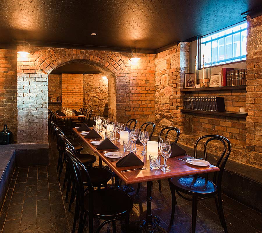 The original gaol cells located underground have been restored and converted into a one-of-a-kind private dining space. Ideal for those looking for a unique experience with century-old stone walls, heavy timber tables and candlelit rooms, or host a sit-down dinner for 18. Ideal for designing your own food and beverage dining experience.