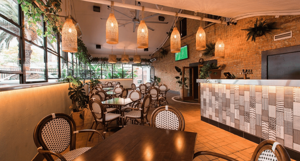 The perfect spot for a daytime or evening get together. This beautiful terraced room with exposed brick and glass windows is wrapped in greenery, providing a tropical and elegant backdrop. Relax with a glass of champagne and choose from the many shared plates in this sheltered setting. Heated in winter and in the warmer months, stay cool with an enormous fan turning from the high set ceiling.